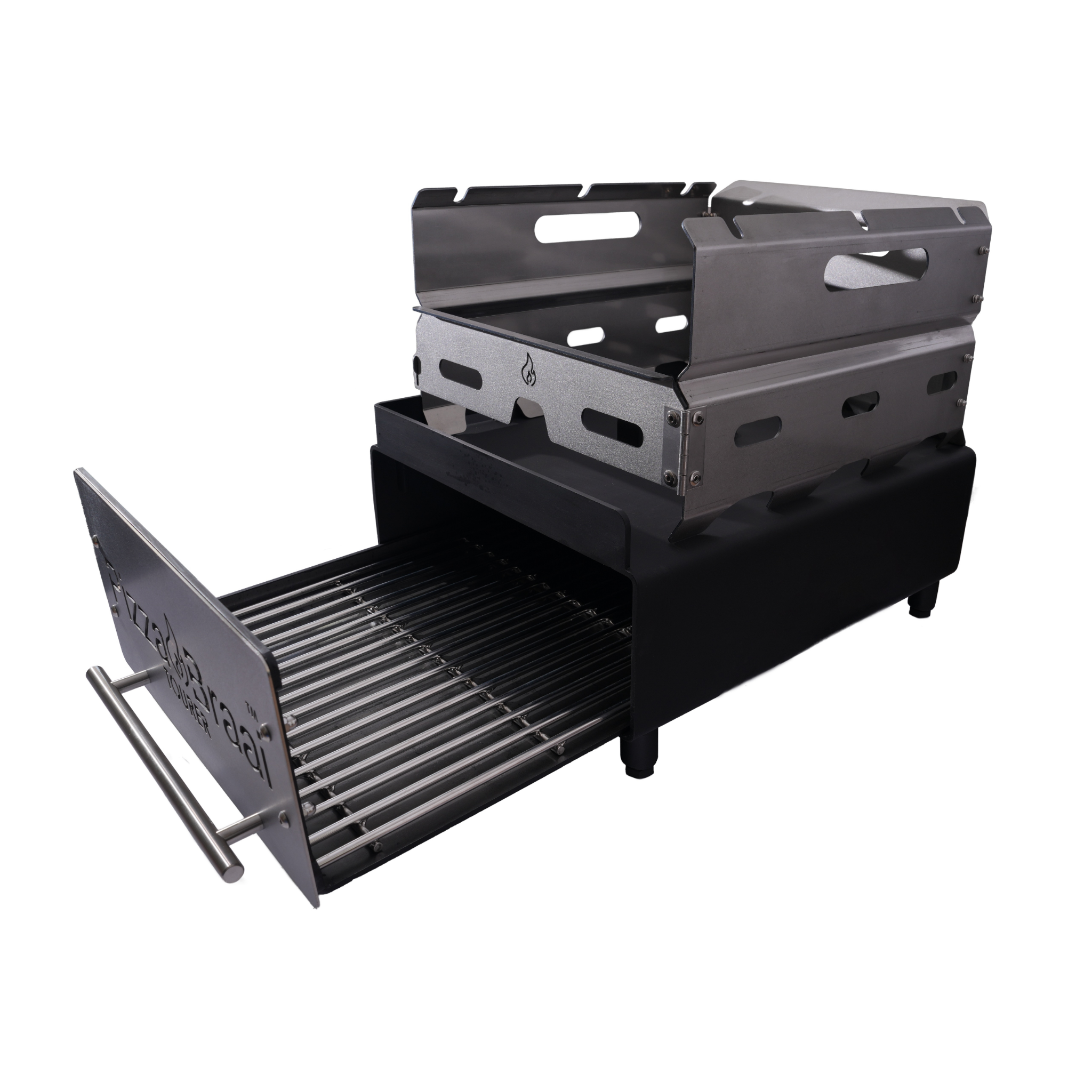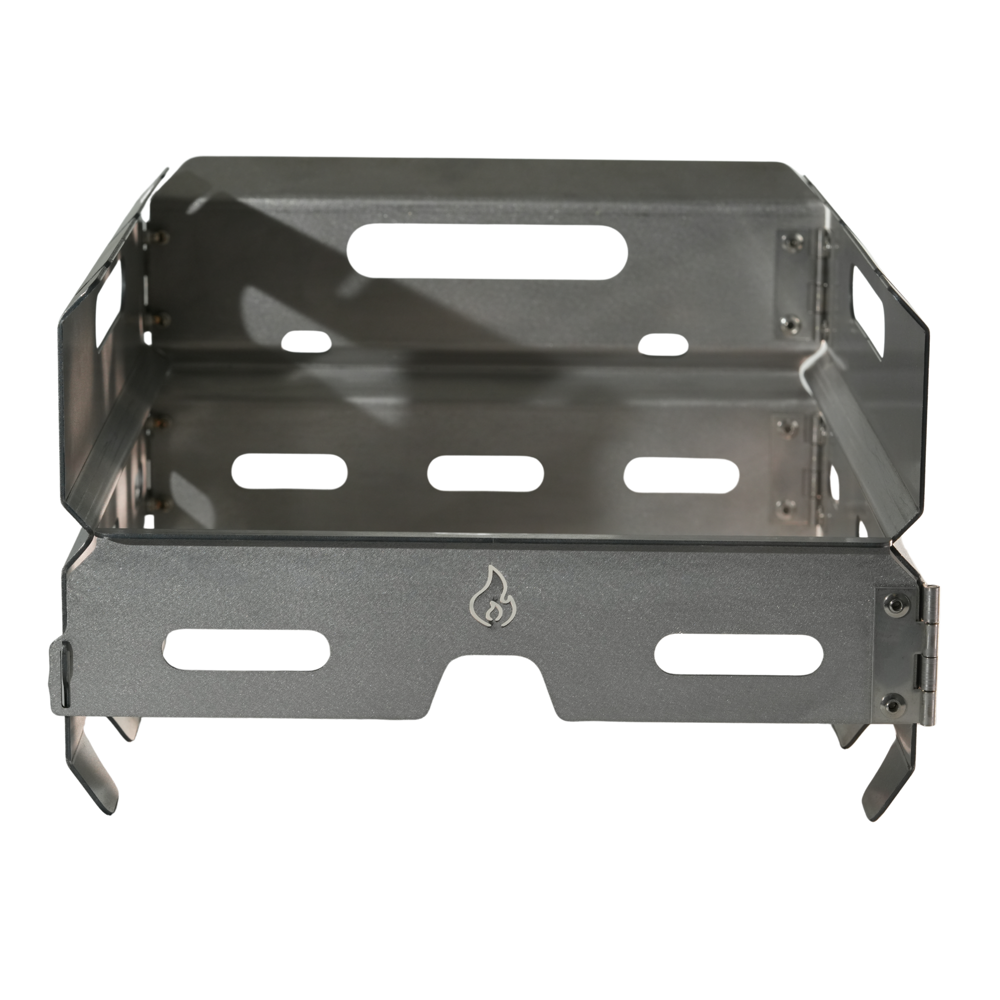Enhance your Pizza Braai™️ Tourer with the Tourer Windshield – a foldable stainless steel fire shield designed for performance in outdoor cooking. Built from 2 mm 3Cr12 stainless steel with 304 stainless steel hinges and multi-grip rivets, this matt-finished accessory is made to keep your flames steady, your coals contained, and your heat consistent.